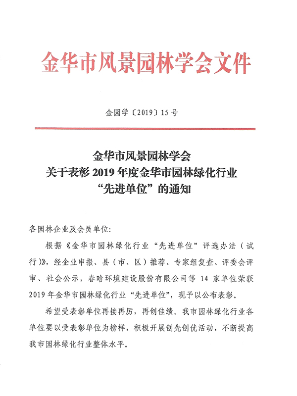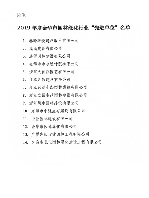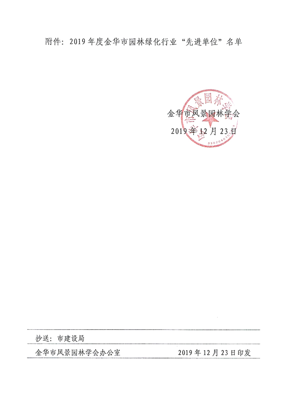 2019年金華市園林綠化先進、誠信單位