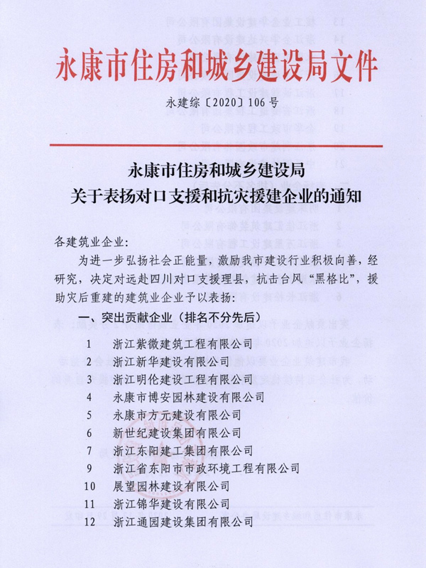 關于表揚對口支援和抗災援建企業的通知