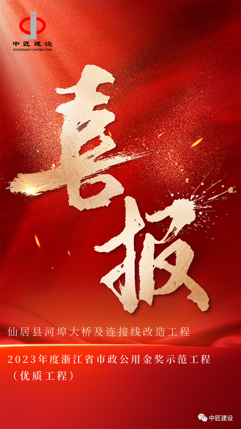 近日,中匠園林建設有限公司(以下簡稱“中匠建設”)承建的仙居縣河埠大橋及連接線改造工程,被浙江省市政行業(yè)協(xié)會高度認可,榮獲2023年度浙江省市政公用金獎示范工程(優(yōu)質工程)榮譽。